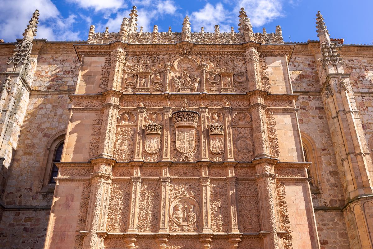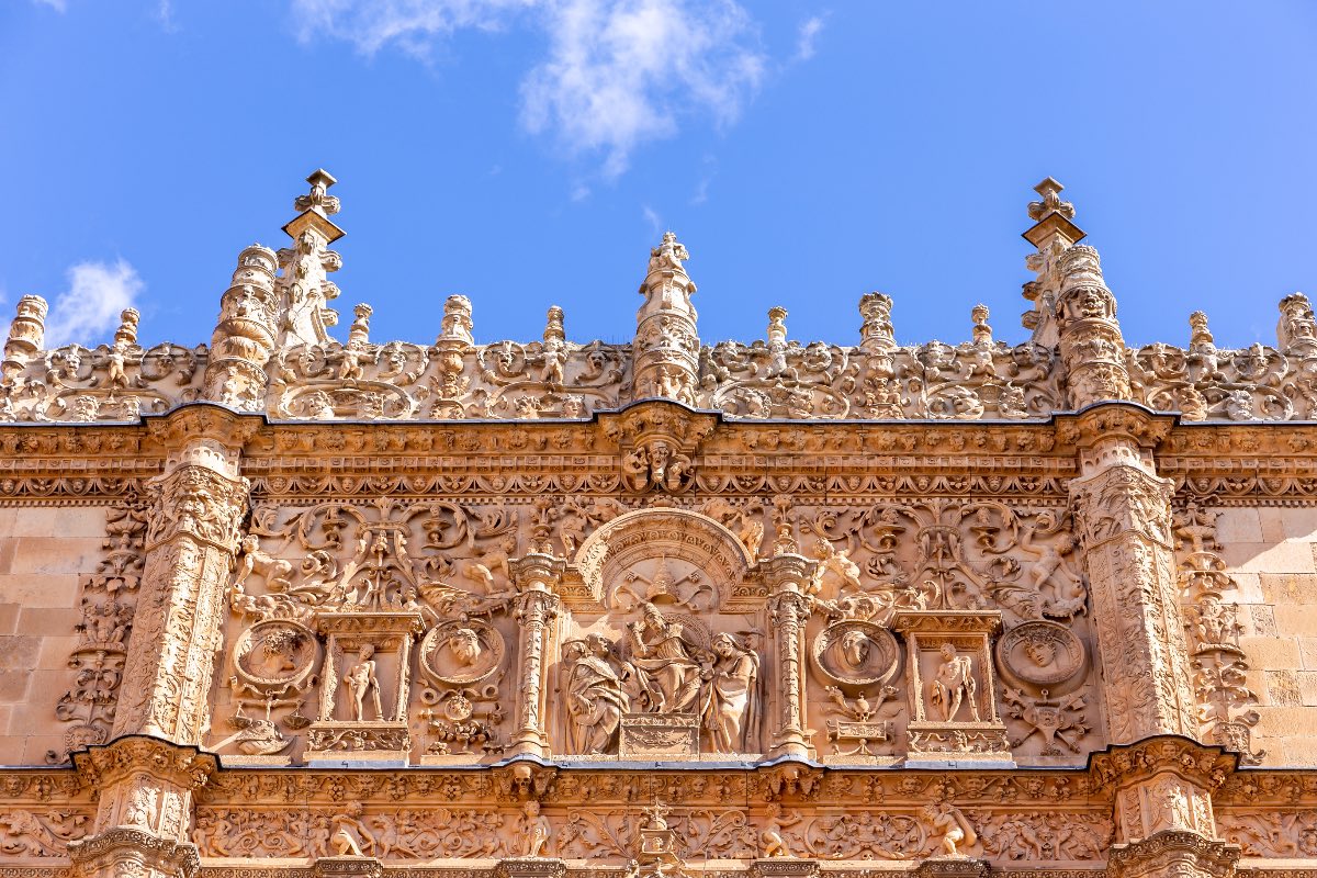 La característica principal de este arte es que la decoración grutesca se hace subsidiaria de la arquitectura, se mantienen las formas arquitectónicas del Gótico y los grutescos cubren fustes de columnas, pilastras, arquivoltas, frisos, hasta llegar a cubrir toda la fachada. El ejemplo más significativo es la Fachada Rica de la Universidad de Salamanca.